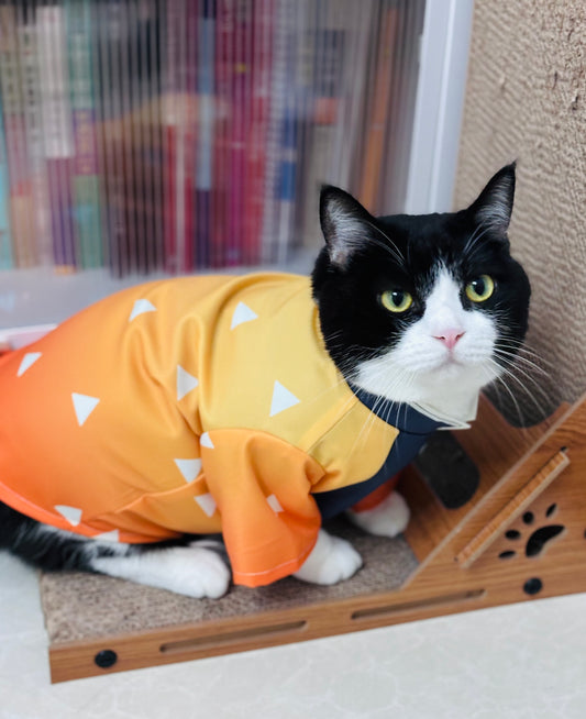 Cat Cosplay Outfit - Demon Slayer Zenitsu-Inspired Costume for Cats & Small Dogs | Anti-Shedding Spring/Summer Wear