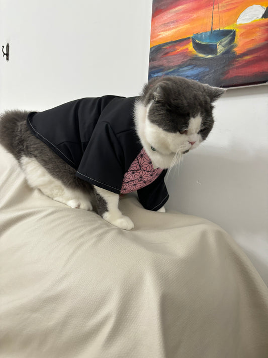 Cat Cosplay Outfit - Demon Slayer Nezuko-Inspired Costume for Cats & Small Dogs | Anti-Shedding Spring/Summer Wear